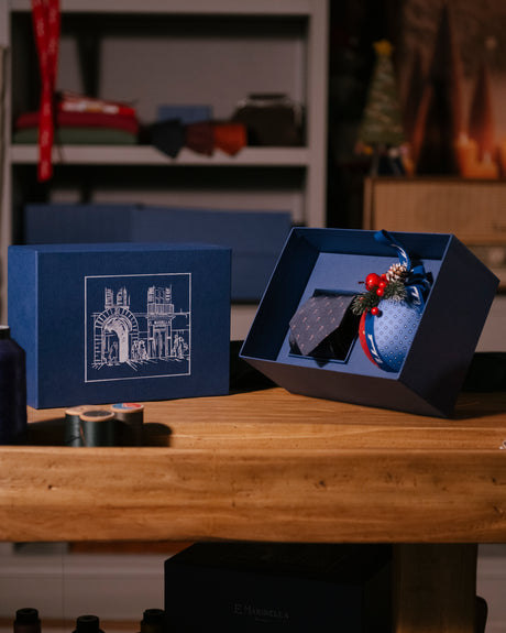 CHRISTMAS BOX WITH BLUE STOLE 115 IN WOOL, SILK AND CASHMERE