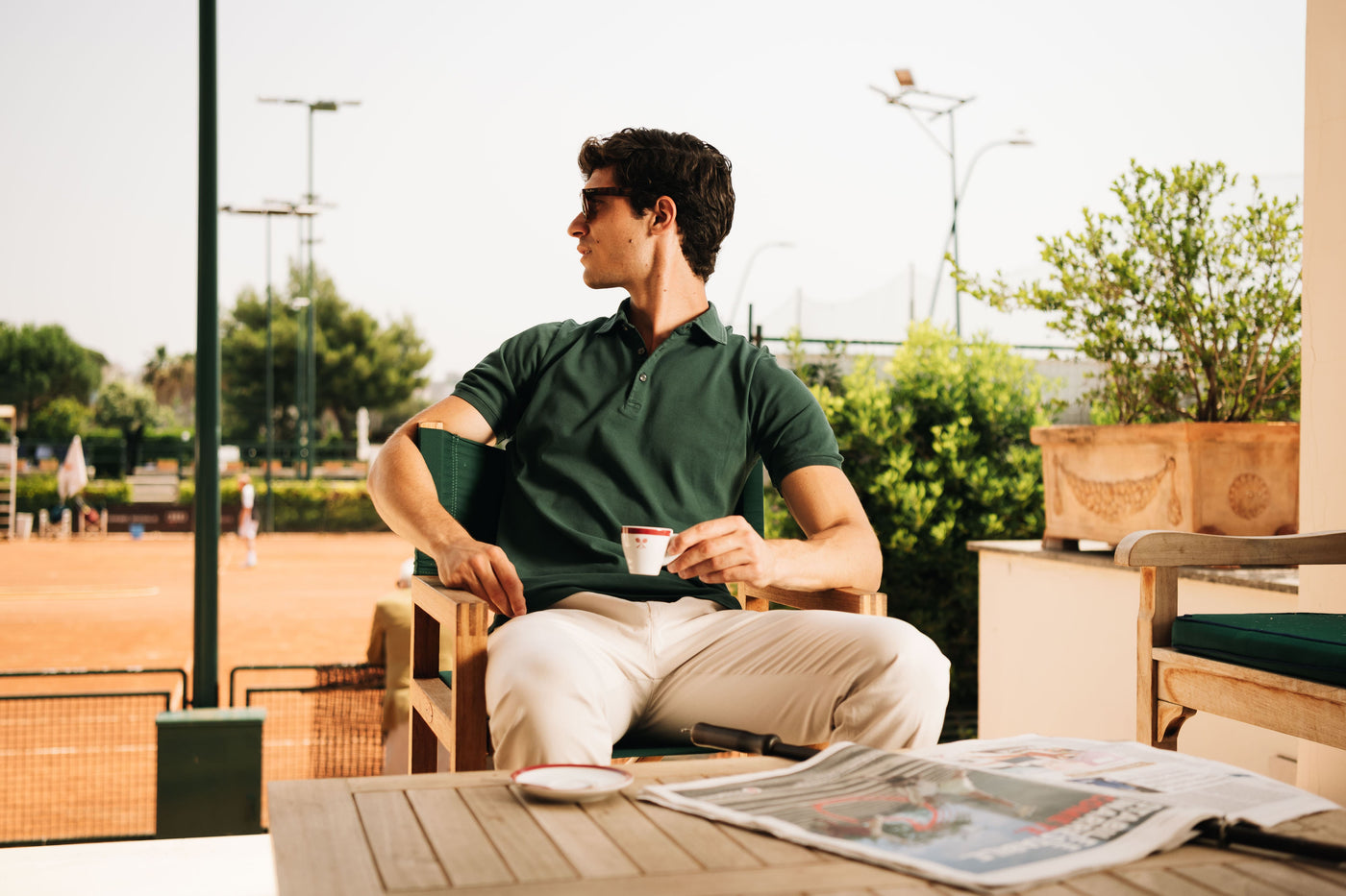A collection that blends sartorial refinement with the dynamic spirit of tennis. Featuring exclusive details and crafted from high-quality materials, each piece expresses a distinctive, sporty elegance. Designed for those who live style with passion, on and off the court, this line celebrates the meeting of tradition, comfort, and the unmistakable tailoring of the Maison.