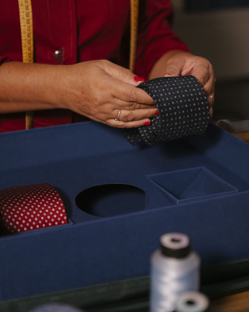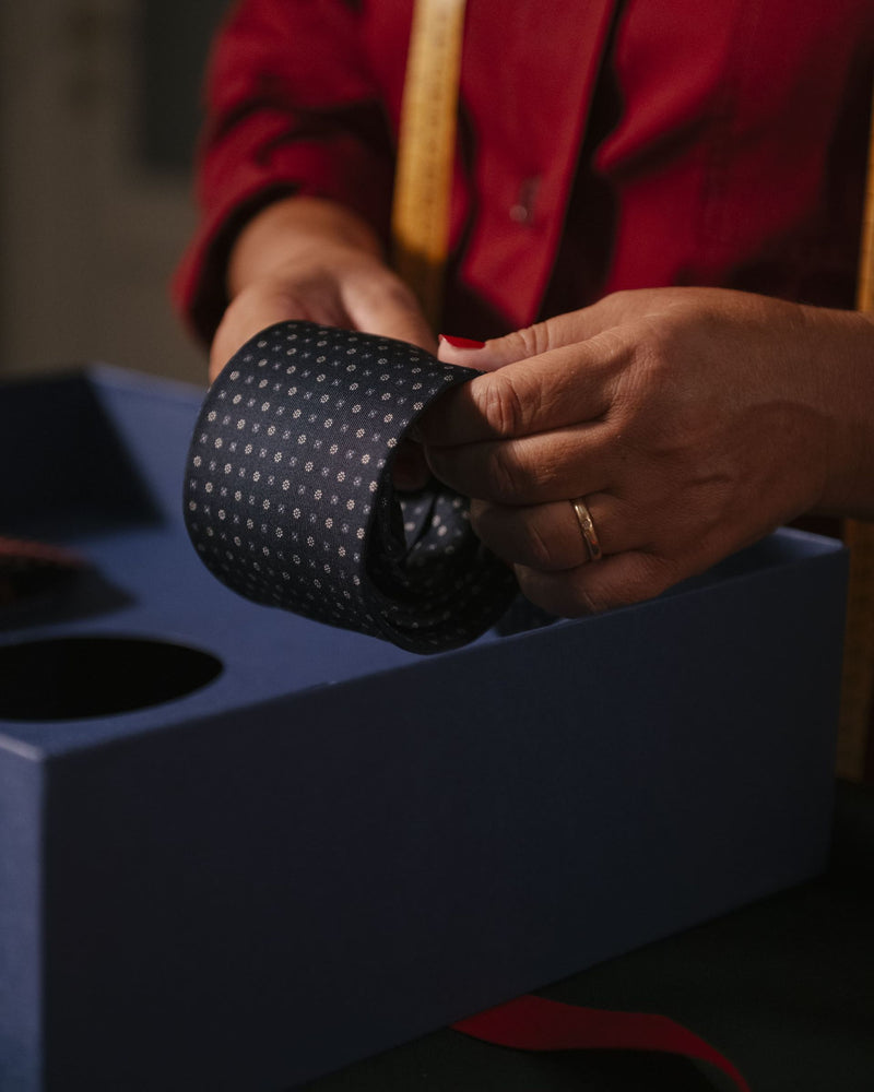 The ultimate expression of E. Marinella's exellence is its tie: not merely a strip of silk, but a masterpiece of handcrafted precision, born from techniques so refined that no industrial production could ever replicate them.