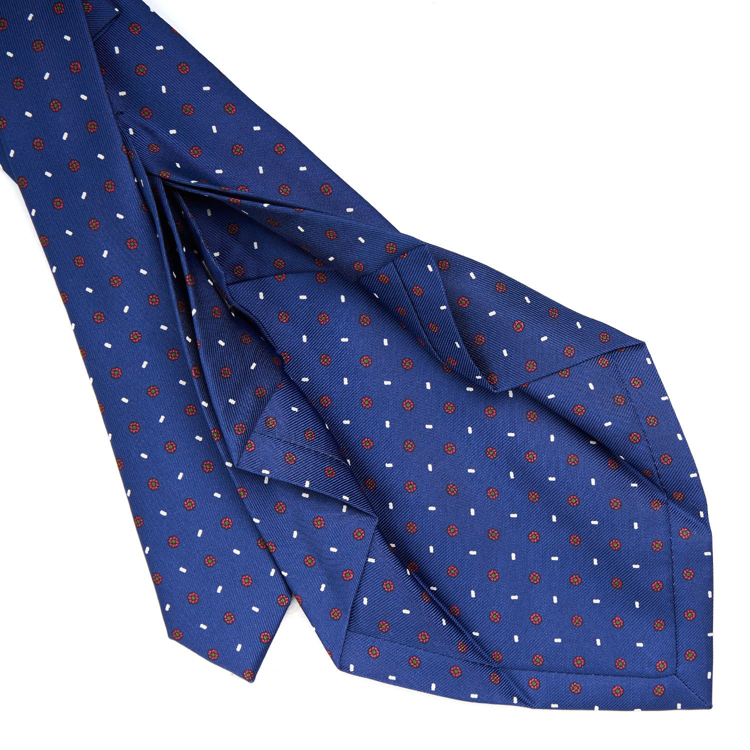 The seven-fold tie from E.Marinella is a completely artisanal product from the hand-printing of the silk to individual cutting of each piece of fabric to the closing of the finished product. This is a particularly precious tie because of the greater amount of silk used: the silk square is folded on itself seven times, giving the tie a fuller consistency even at the height of the knot and weightiness.