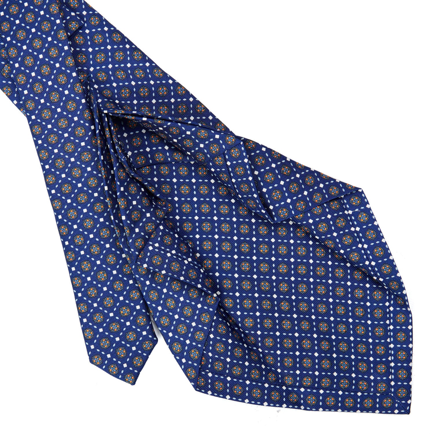 The seven-fold tie from E.Marinella is a completely artisanal product from the hand-printing of the silk to individual cutting of each piece of fabric to the closing of the finished product. This is a particularly precious tie because of the greater amount of silk used: the silk square is folded on itself seven times, giving the tie a fuller consistency even at the height of the knot and weightiness.