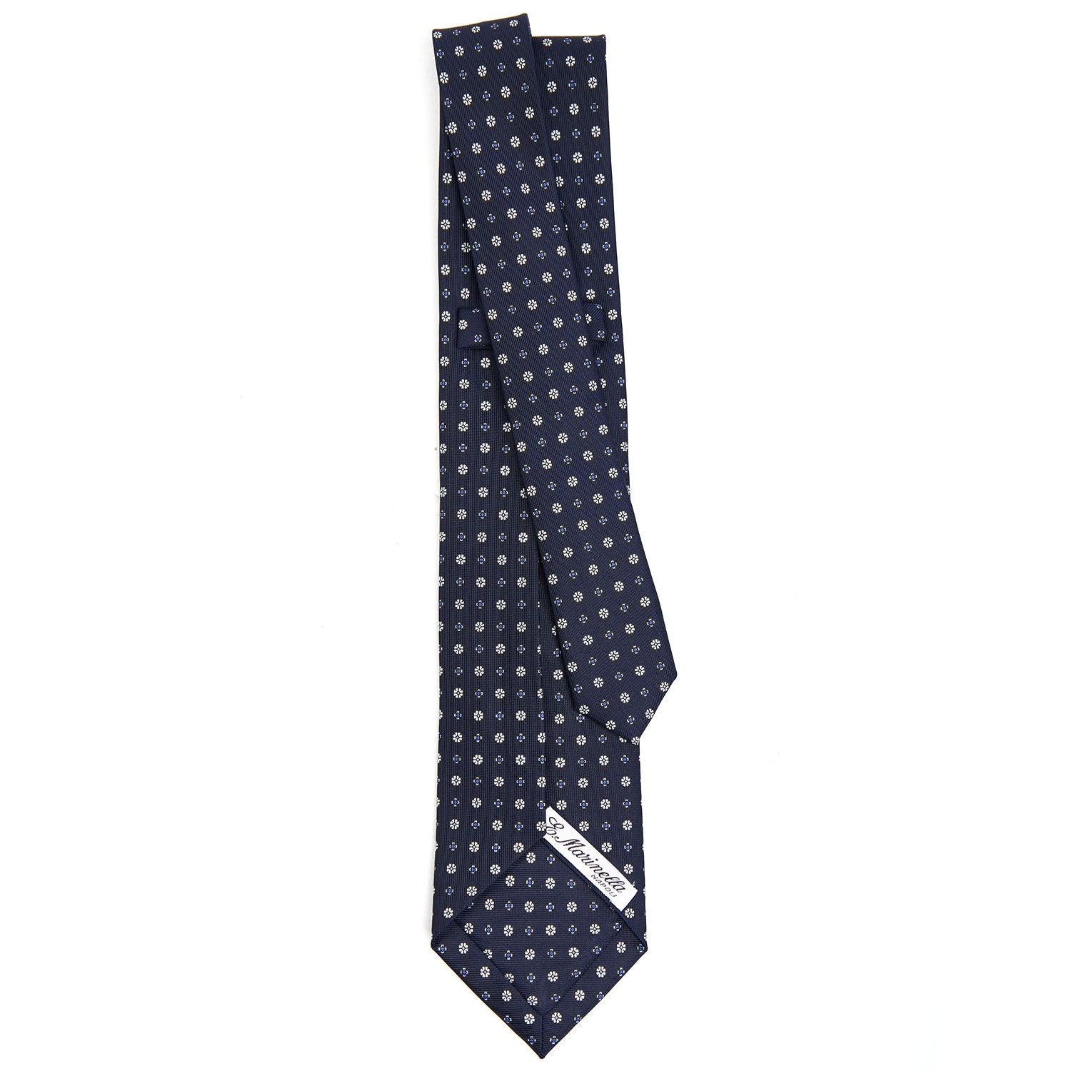 The nine-fold tie from E.Marinella is a completely artisanal product, from the hand-printing of the silk, to individual cutting of each piece of fabric, to the closing of the finished product. This is a particularly precious tie, because of the greater amount of silk used: the silk square is folded on itself nine times, giving the tie a fuller consistency, even at the height of the knot. and weightiness.