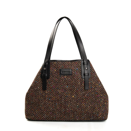 BROWN TOTE BAG In wool and textured leather