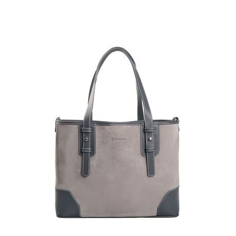 GREY MIDI TOTE BAG In suede and leather