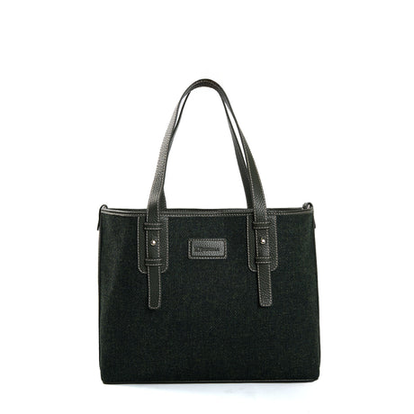 BROWN AND BLACK TOTE BAG In wool and textured leather