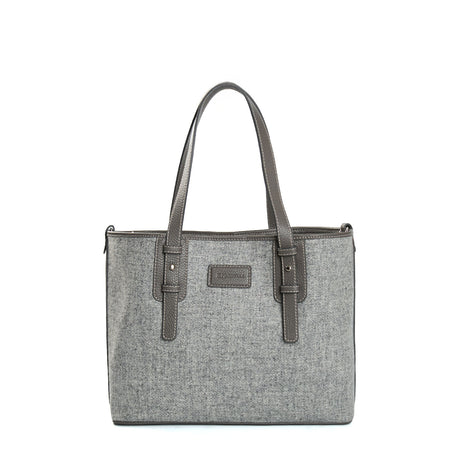 LIGHT GREY MIDI TOTE BAG In wool and leather