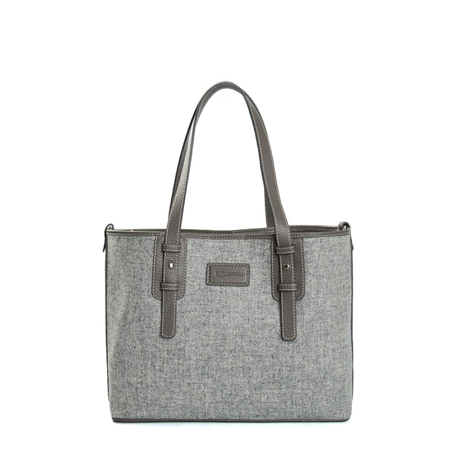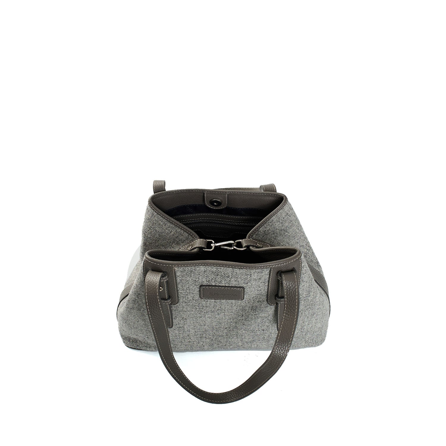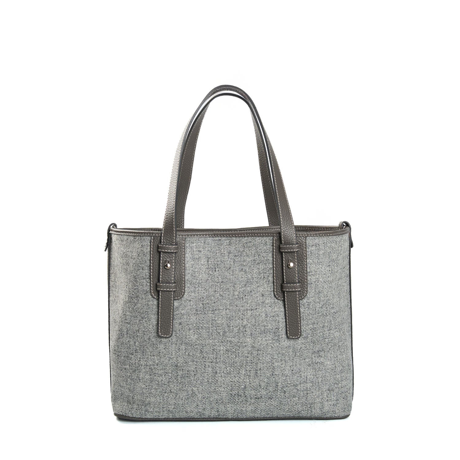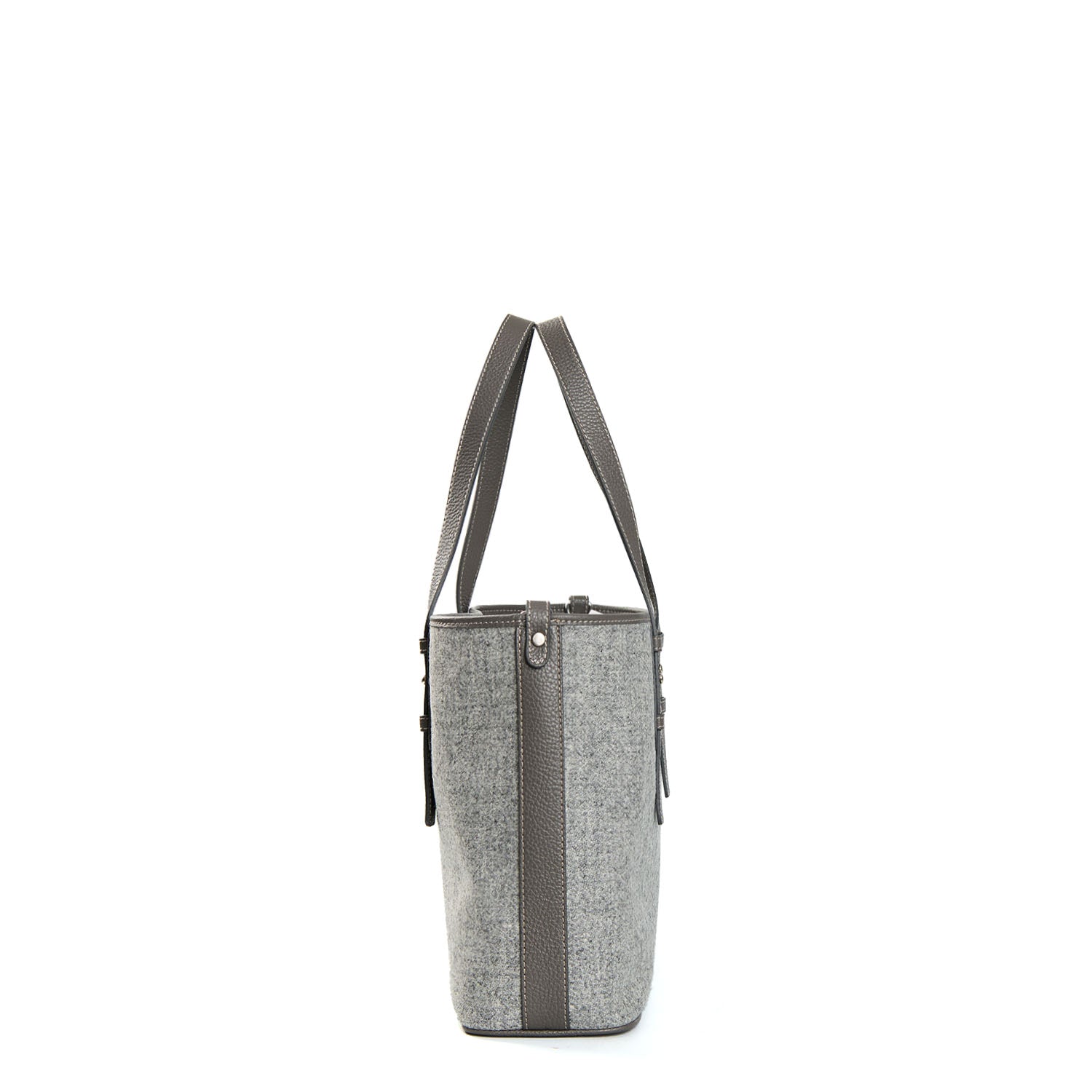 Our new signature midi tote bag is a masterpiece of Italian style, crafted with the artisanal mastery. The fine woolen English wool captures attention, while the impeccable details reflect Italian excellence. Essential and trendy, the tweedy TOTE BAG is crafted in warm colors and embellished with genuine grain leather details and central logo lettering. One inner zipper pocket and one slip with lining fabric logo.The sides can be opened or closed by a central hook that allows the bag to be versatile for any occasion. The interior is lined by logo ed fabric and completed by double pockets, with and without zip. The bag can also store a laptop.