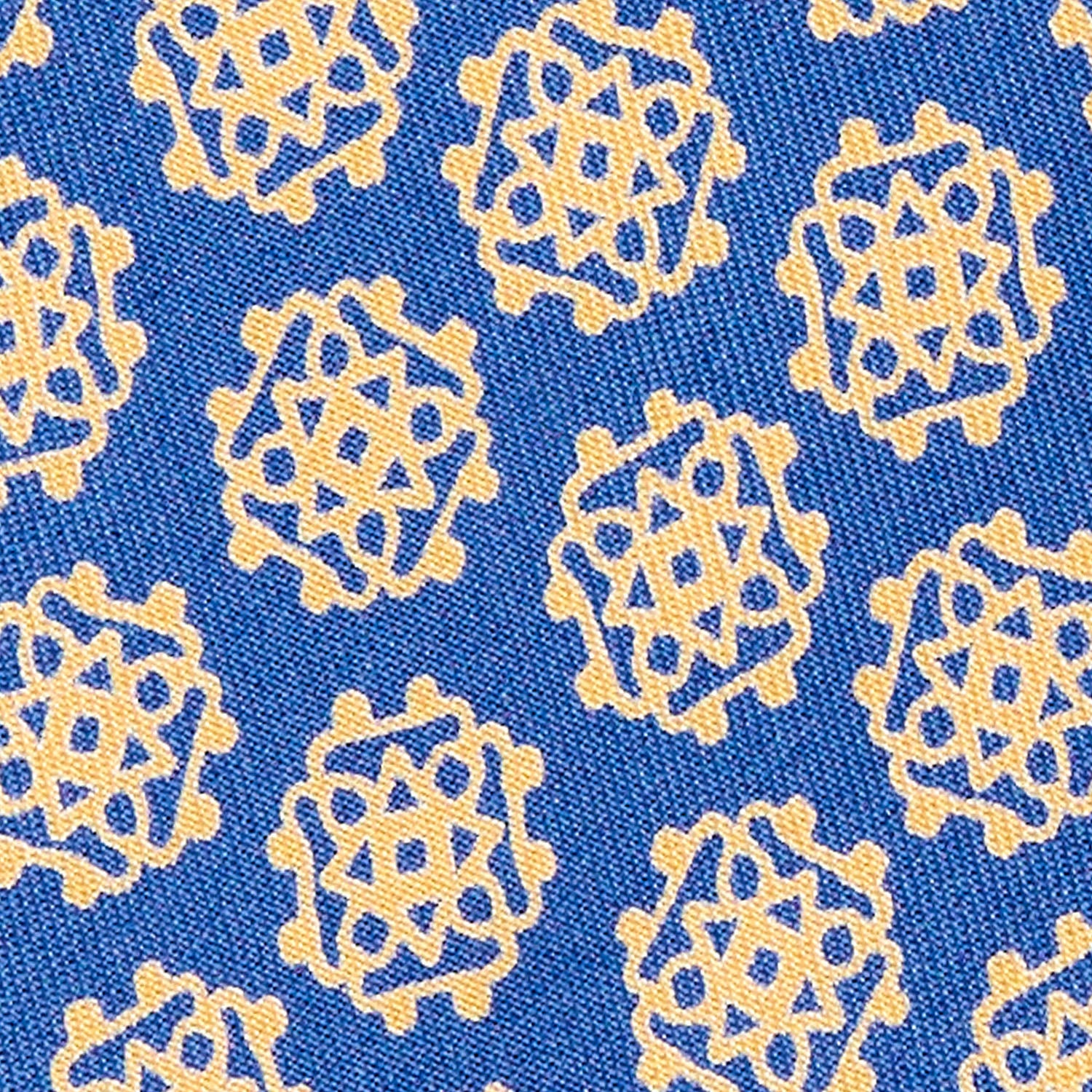 This tie is part of the Archivio collection which offers historical prints from the 1930s to the 1980s in a modern way. The 1990s preserved a strong sense of creativity, but with a more orderly and structured approach compared to the 1970s and 1980s. Patterns became less baroque and more refined, featuring bold geometries and symmetrical compositions. The dominant colors were blue, bright blue, and red, creating a balance between tradition and modernity.