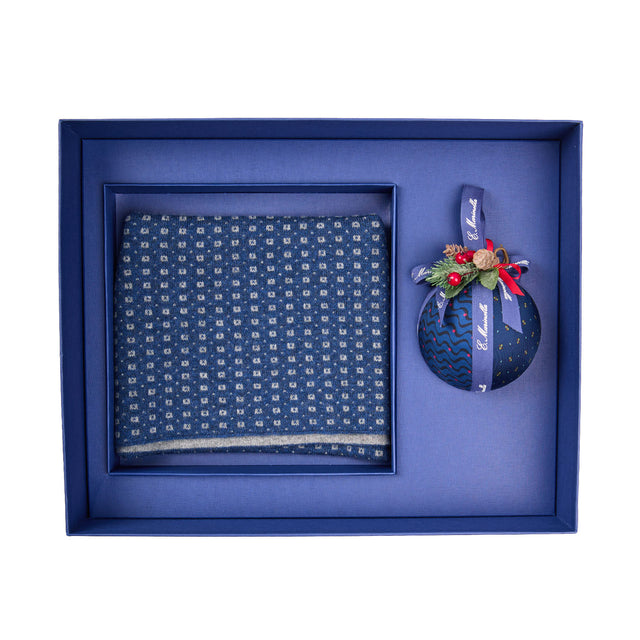 CHRISTMAS BOX WITH BLUE AND GREY CASHMERE NECK WARMER