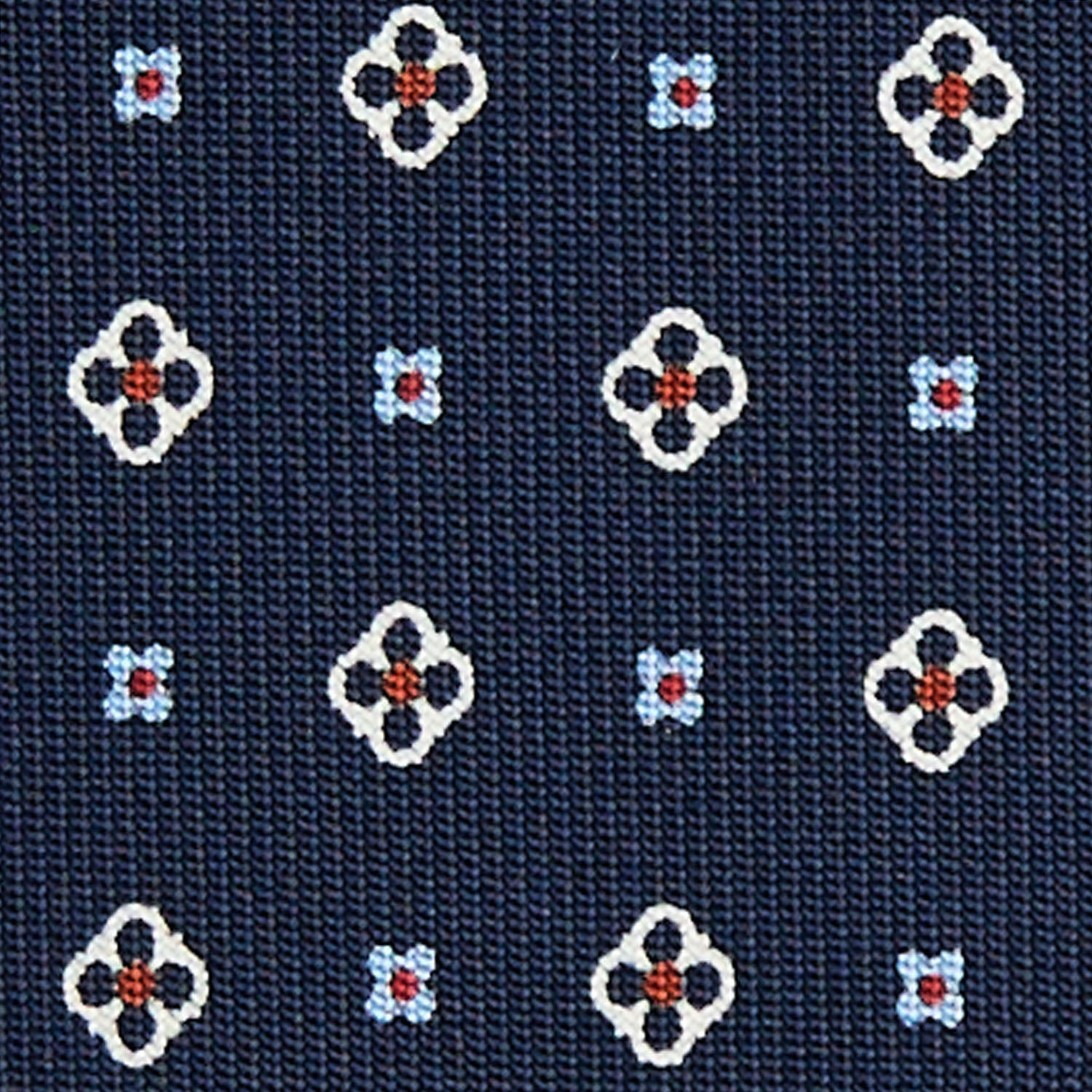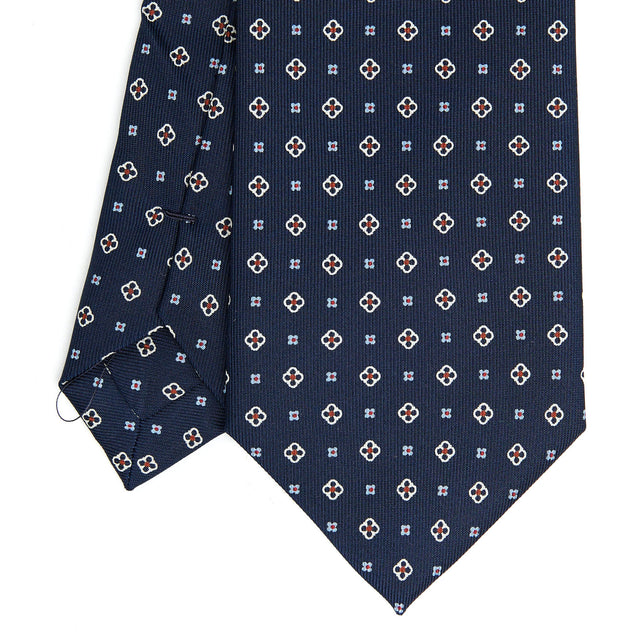 The E. Marinella tie is a hand-made product. From the hand-printed silk, to the individual cutting of each square, to the hand-closing of the final product. Characterised by rich colours, never excessive and by floral or geometric micro-designs. The tie is tipped with the same fabric as an extra detail.