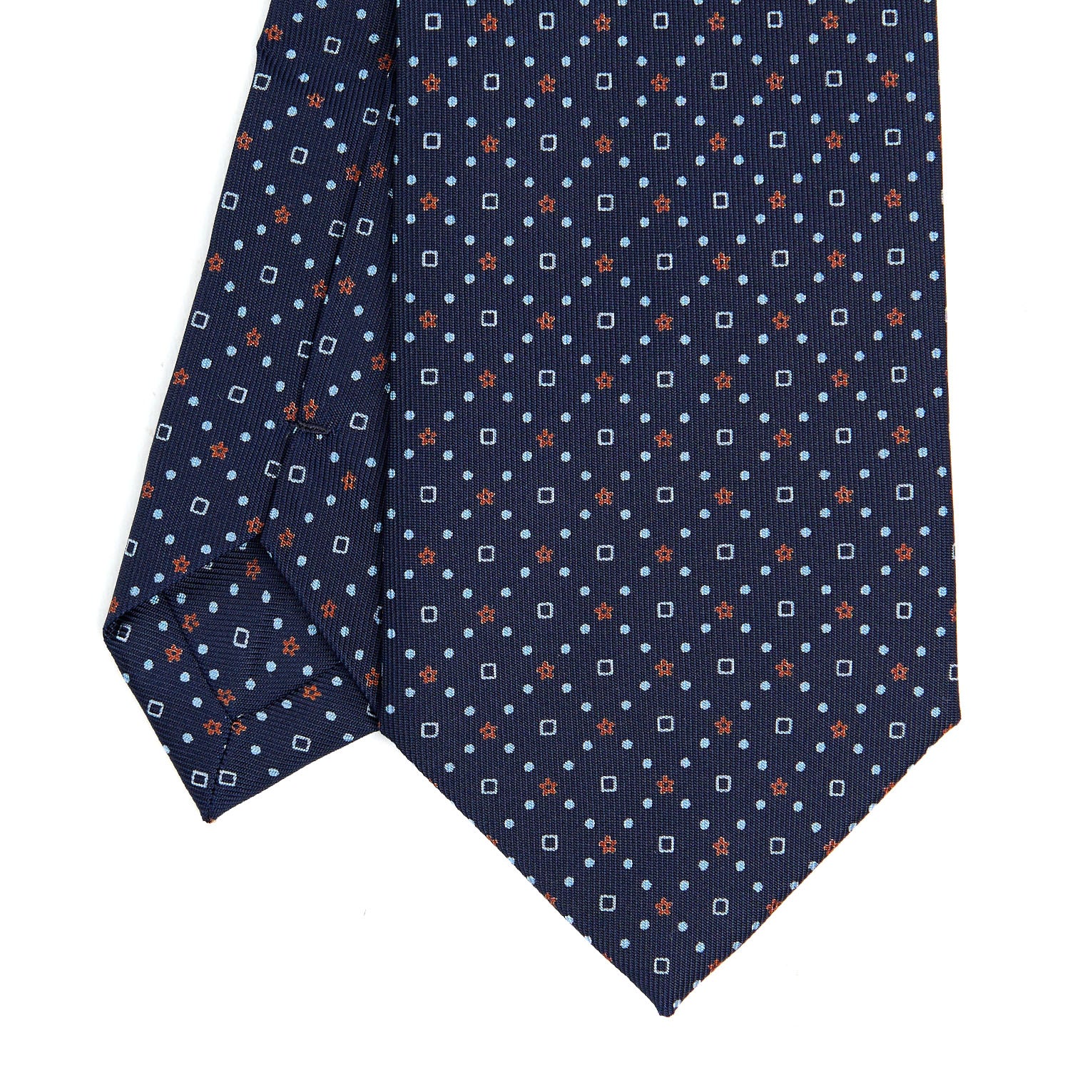 The E. Marinella tie is a hand-made product. From the hand-printed silk, to the individual cutting of each square, to the hand-closing of the final product. Characterised by rich colours, never excessive and by floral or geometric micro-designs. The tie is tipped with the same fabric as an extra detail.