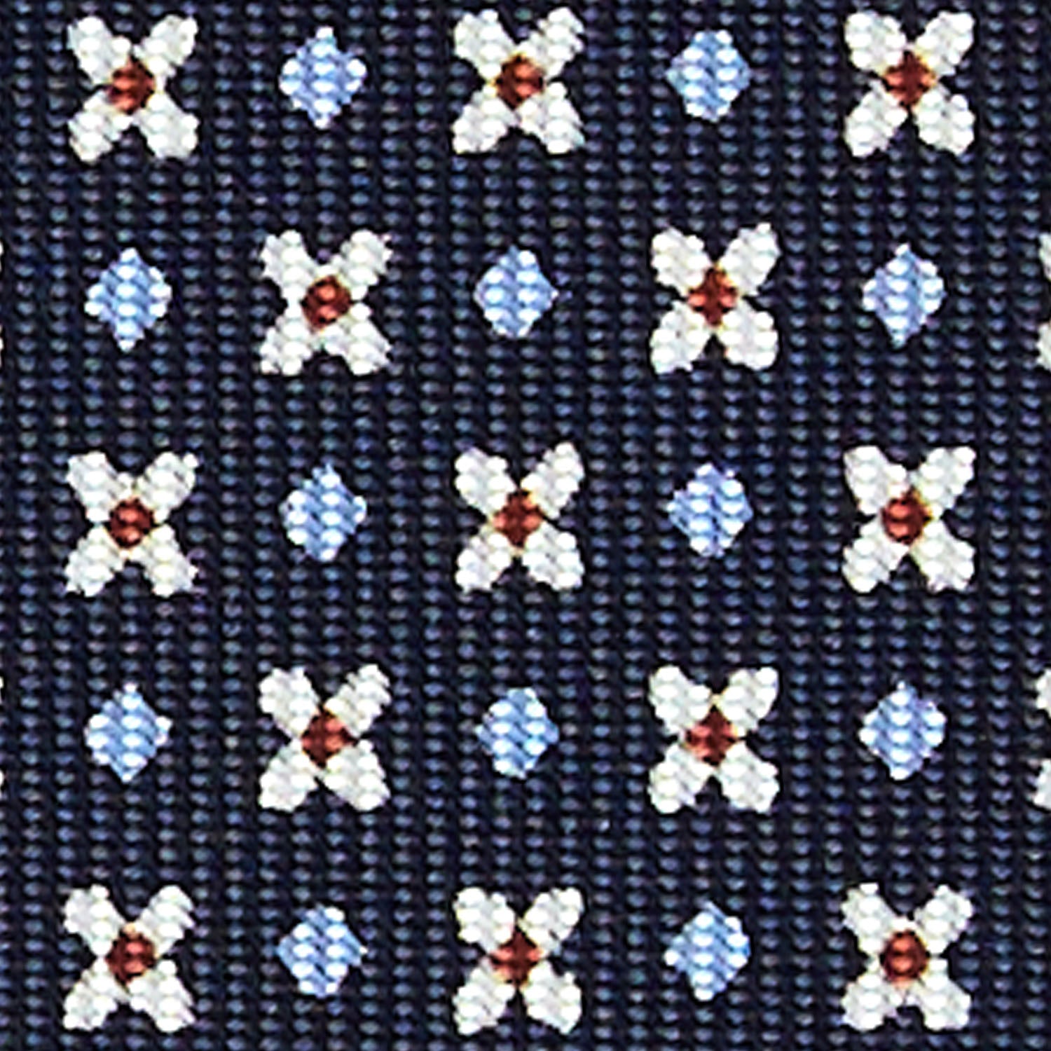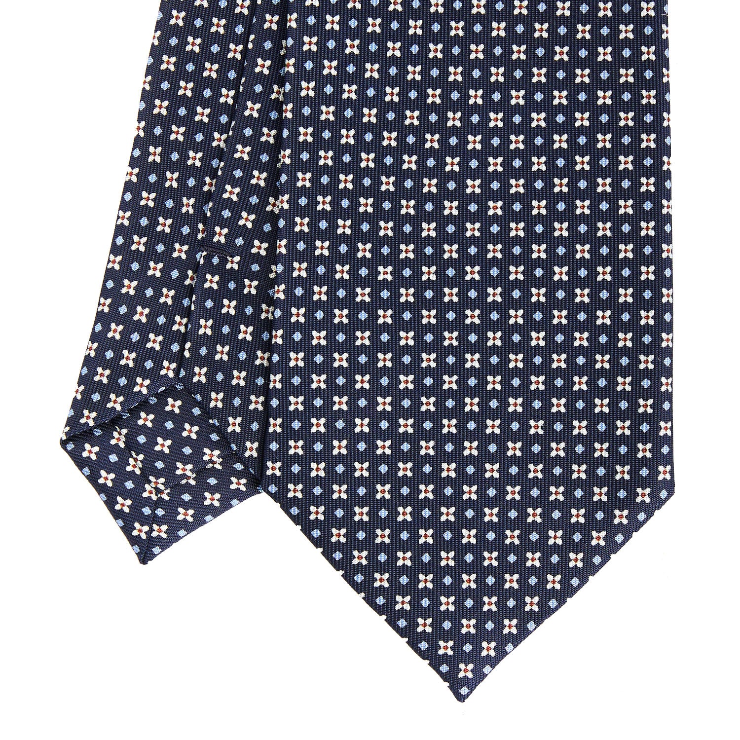 The E. Marinella tie is a hand-made product. From the hand-printed silk, to the individual cutting of each square, to the hand-closing of the final product. Characterised by rich colours, never excessive and by floral or geometric micro-designs. The tie is tipped with the same fabric as an extra detail. 3 fold tie