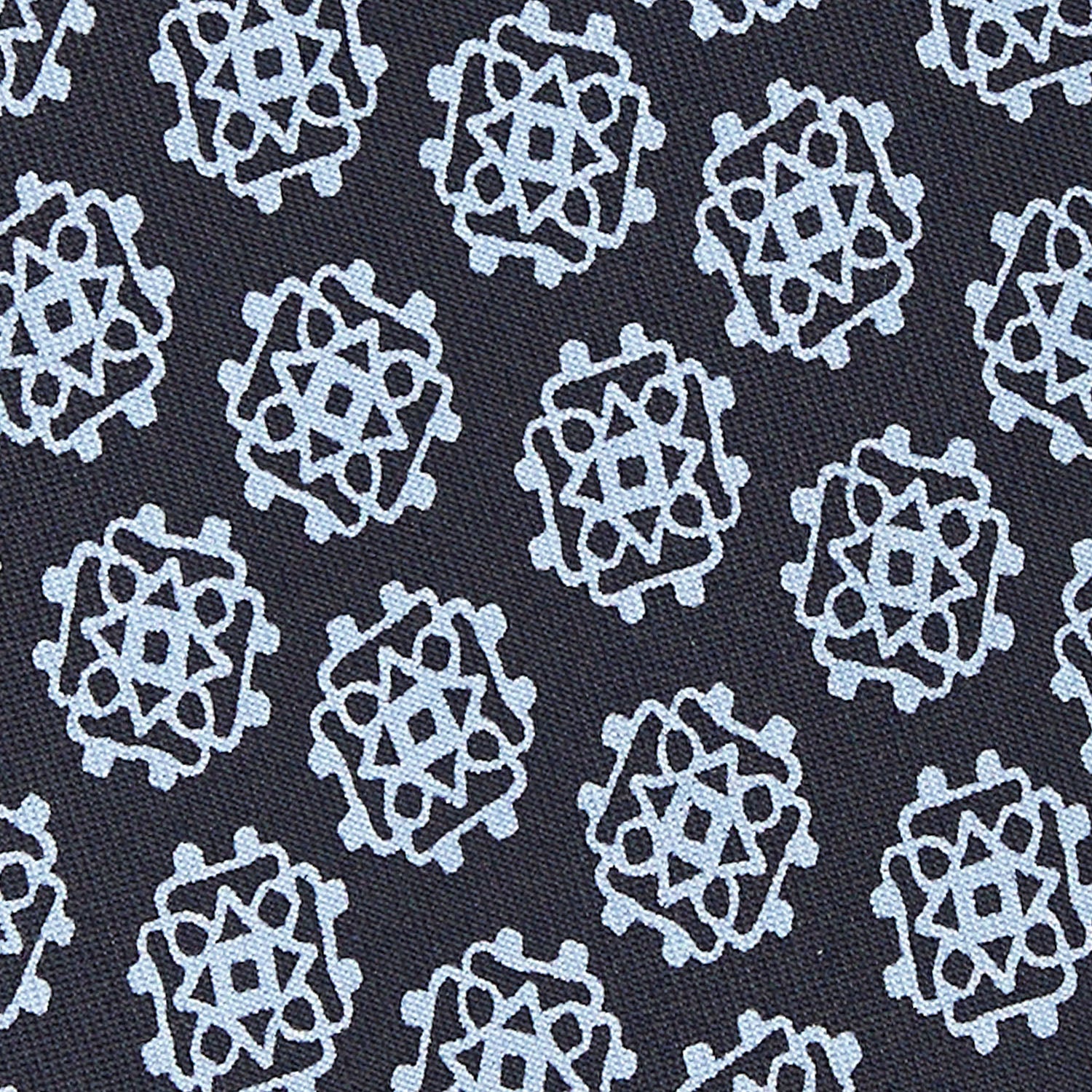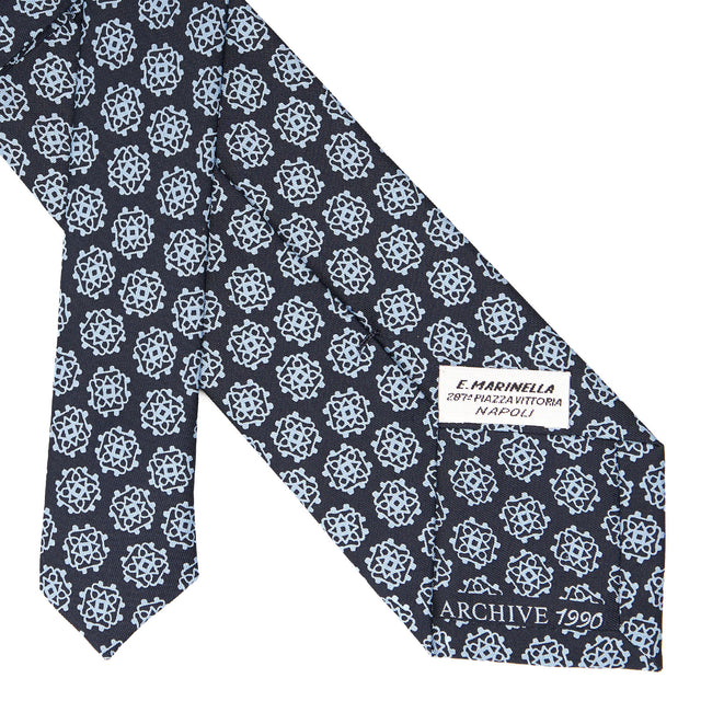 This tie is part of the Archivio collection which offers historical prints from the 1930s to the 1980s in a modern way. The 1990s preserved a strong sense of creativity, but with a more orderly and structured approach compared to the 1970s and 1980s. Patterns became less baroque and more refined, featuring bold geometries and symmetrical compositions. The dominant colors were blue, bright blue, and red, creating a balance between tradition and modernity.