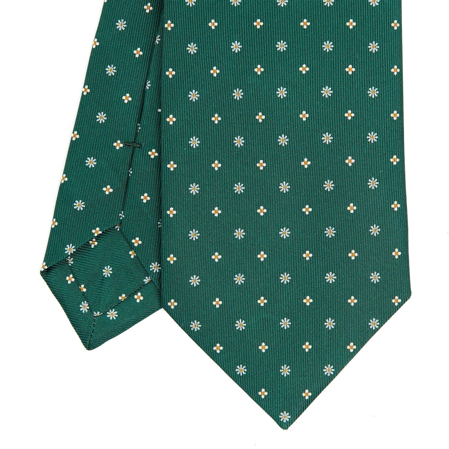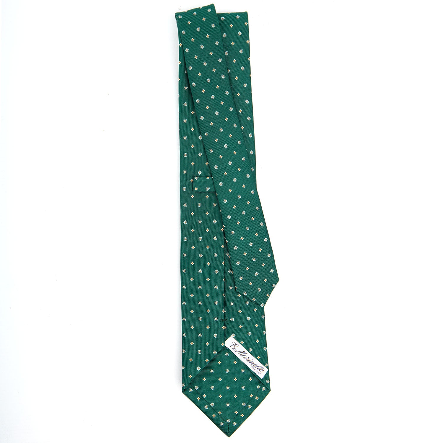 The E. Marinella tie is a hand-made product. From the hand-printed silk, to the individual cutting of each square, to the hand-closing of the final product. Characterised by rich colours, never excessive and by floral or geometric micro-designs. The tie is tipped with the same fabric as an extra detail. 3 fold tie