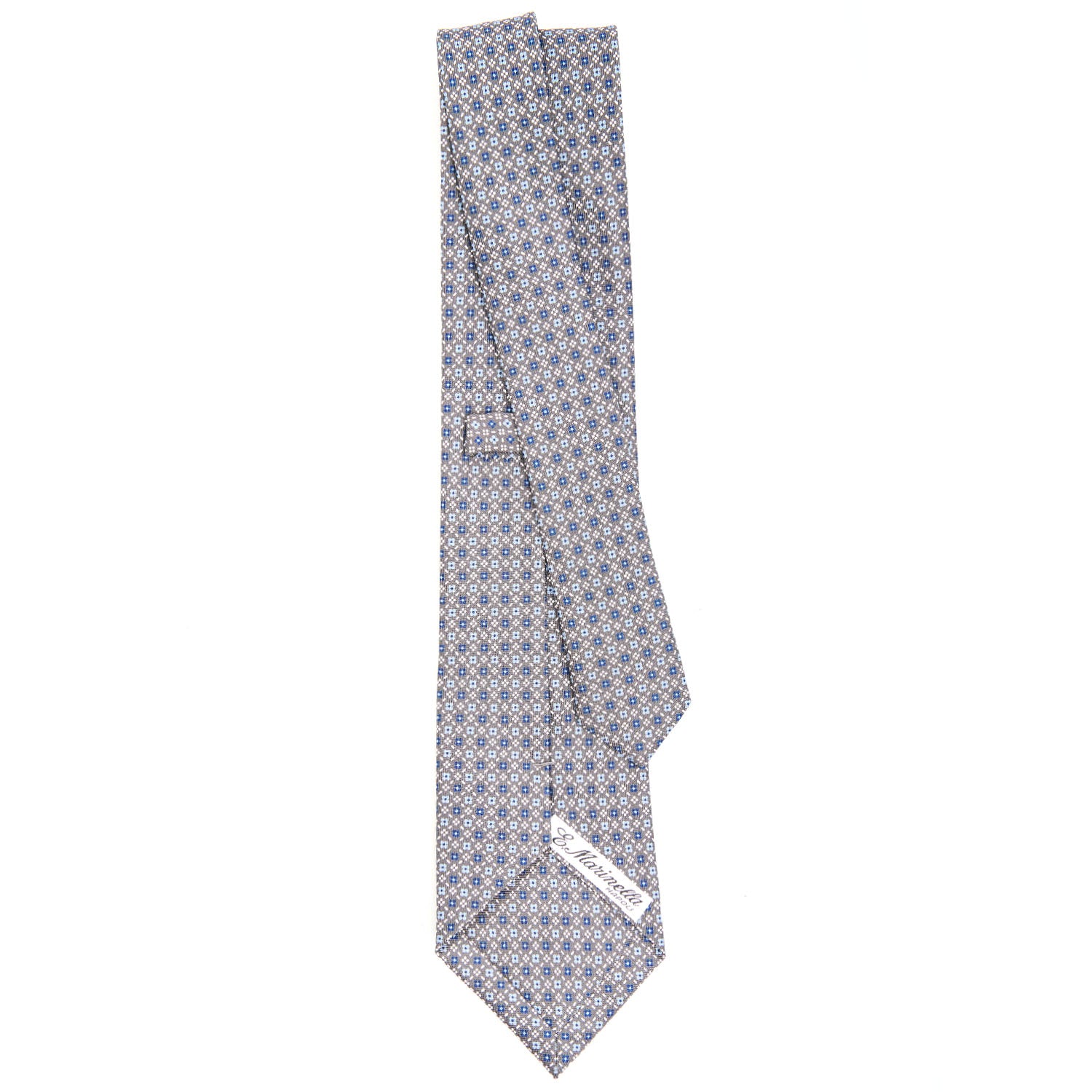 The E. Marinella tie is a hand-made product. From the hand-printed silk, to the individual cutting of each square, to the hand-closing of the final product. Characterised by rich colours, never excessive and by floral or geometric micro-designs. The tie is tipped with the same fabric as an extra detail. 3 fold tie