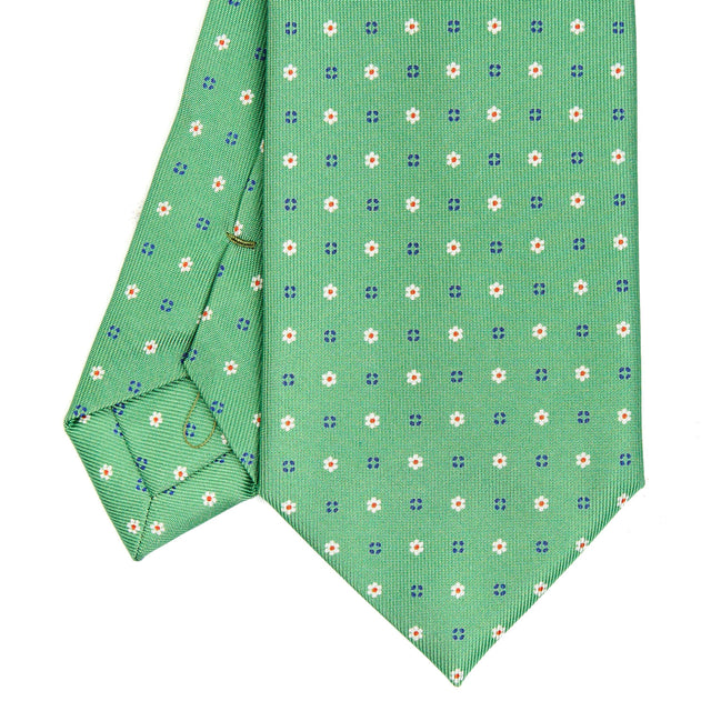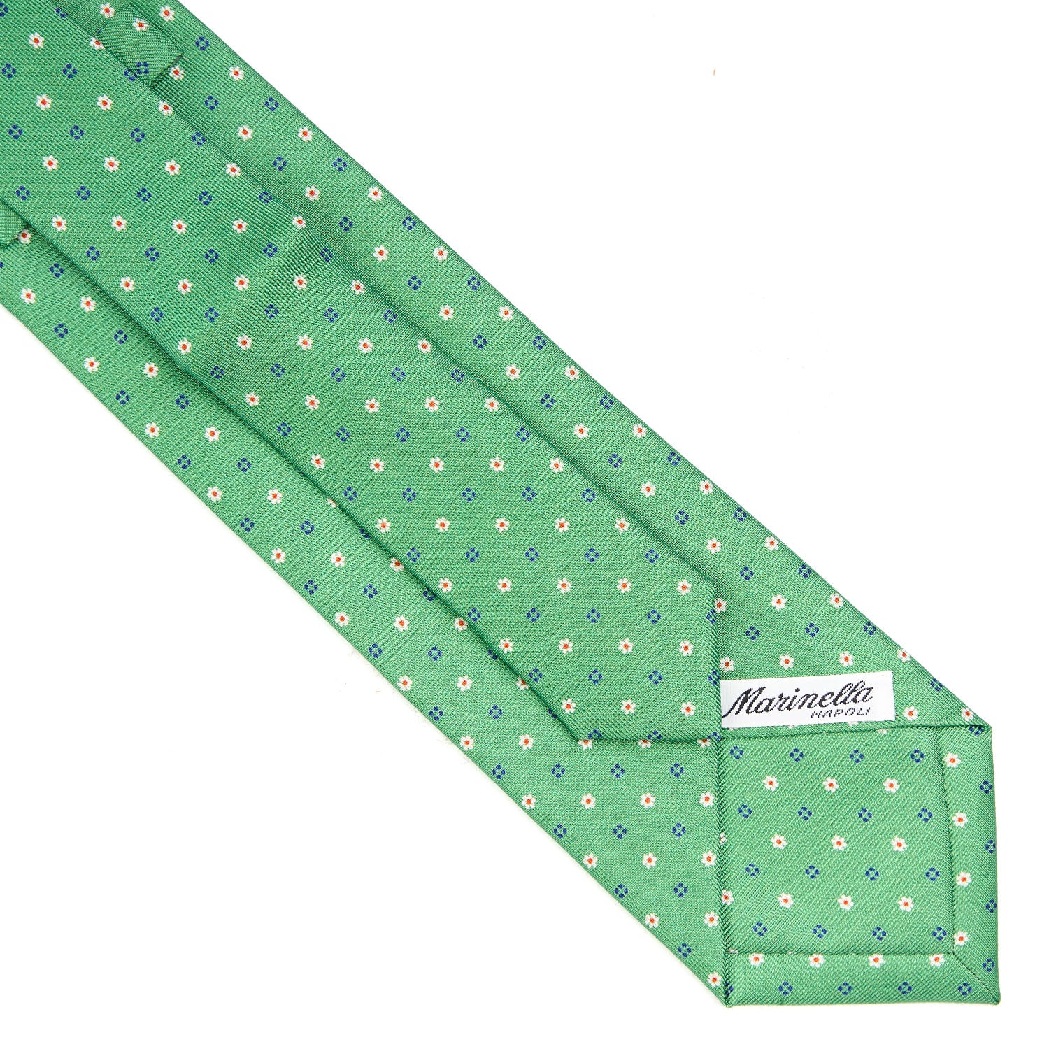 The E. Marinella tie is a hand-made product. From the hand-printed silk, to the individual cutting of each square, to the hand-closing of the final product. Characterised by rich colours, never excessive and by floral or geometric micro-designs. The tie is tipped with the same fabric as an extra detail.