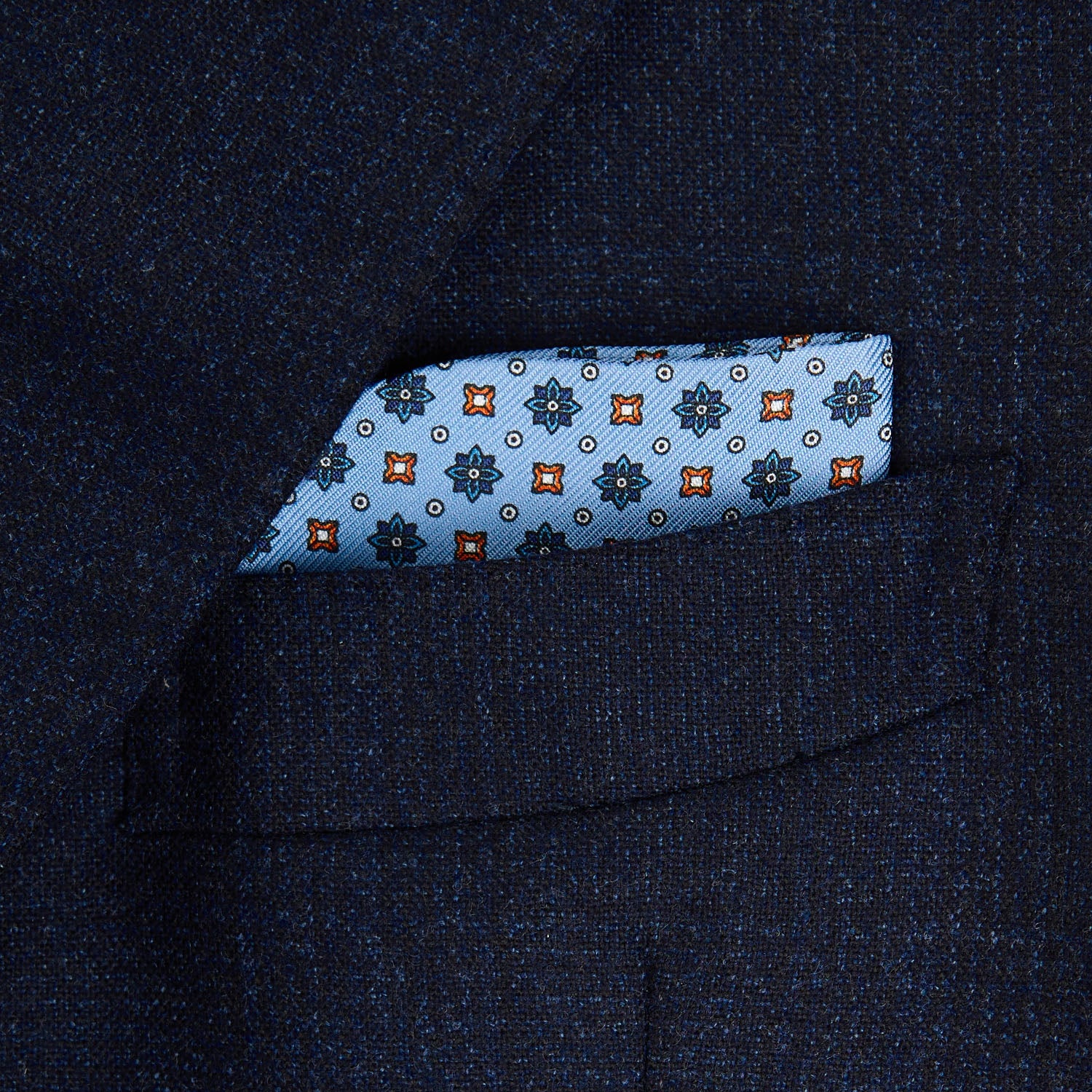 Glasses case in hand-printed silk. with signature E. Marinella patterns and colours. Completely handmade, it is an elegant and convenient way to protect and keep your glasses safe. Worn in the breast pocket, it serves almost as a pocket square, adding colour and contrast to complete your outfit.