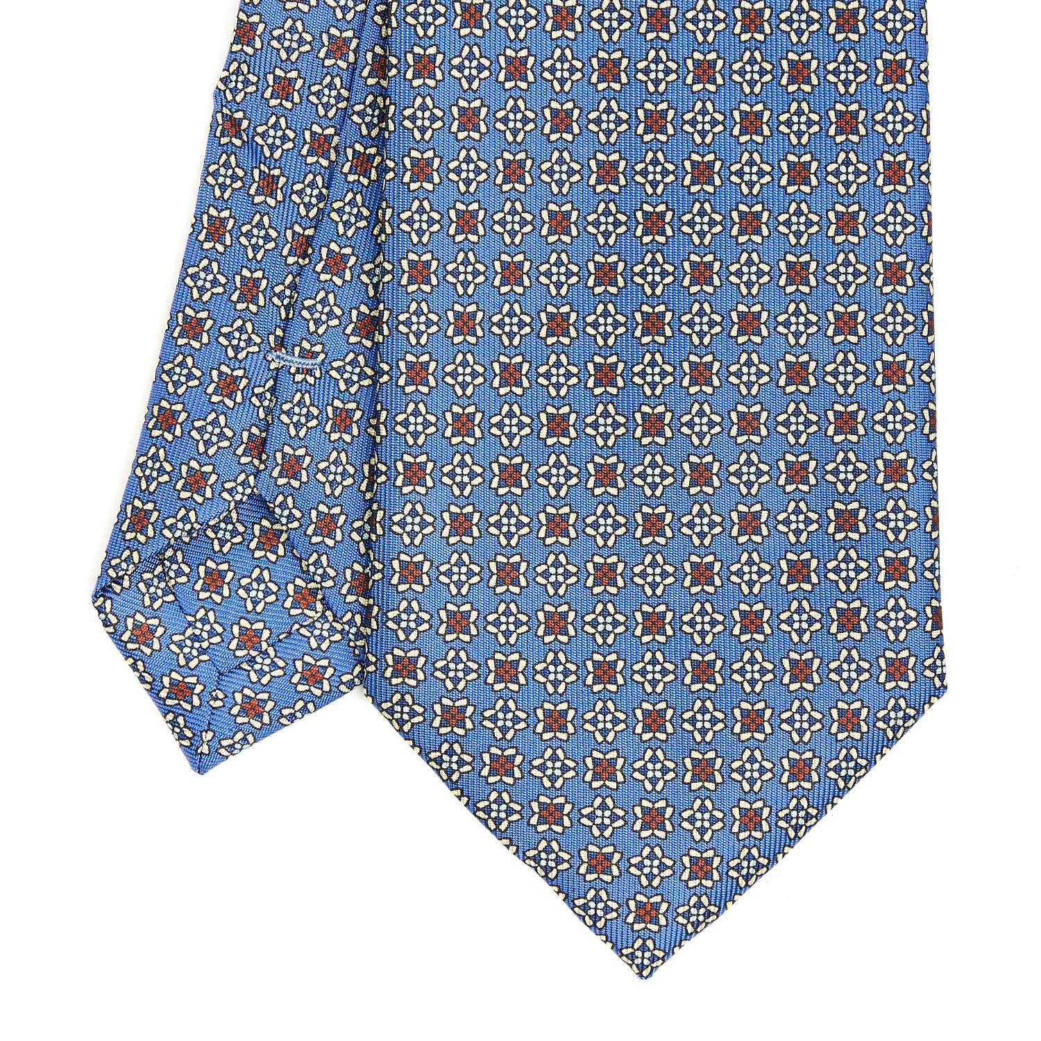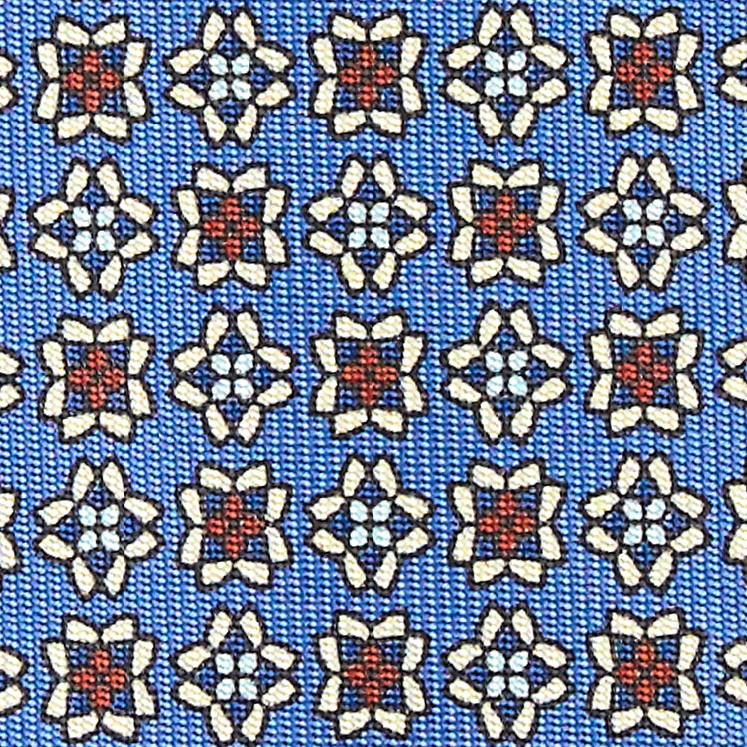 The E. Marinella tie is a hand-made product. From the hand-printed silk, to the individual cutting of each square, to the hand-closing of the final product. Characterised by rich colours, never excessive and by floral or geometric micro-designs. The tie is tipped with the same fabric as an extra detail.