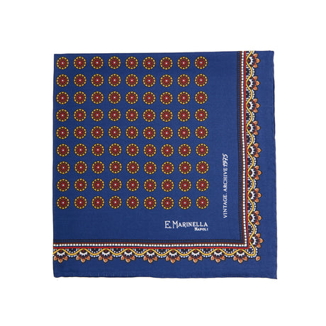 BLUE HAND-PRINTED SILK POCKET SQUARE