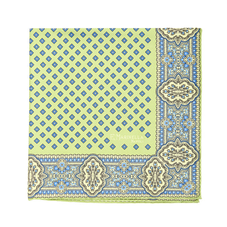 LIGHT GREEN HAND-PRINTED SILK POCKET SQUARE