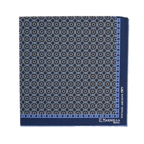 DARK BLUE HAND-PRINTED SILK POCKET SQUARE