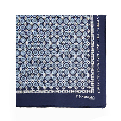 BLUE HAND-PRINTED SILK POCKET SQUARE
