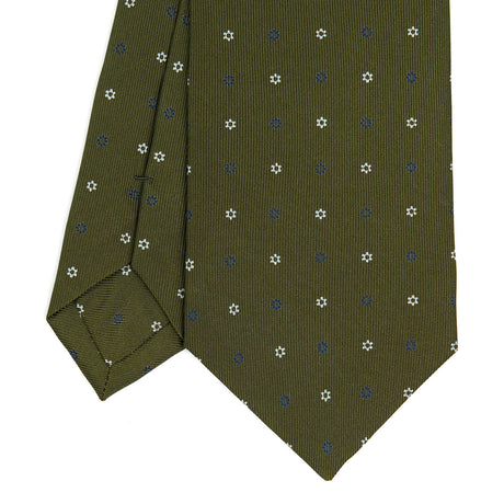 OLIVE GREEN CLASSIC SILK TIE Small flower pattern