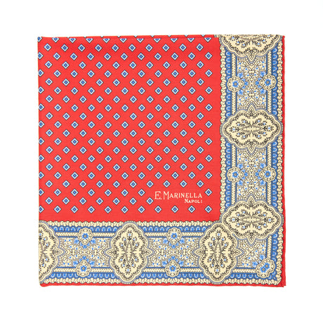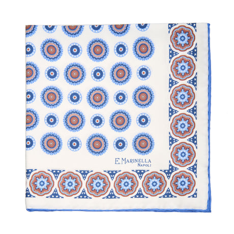 WHITE HAND-PRINTED SILK POCKET SQUARE