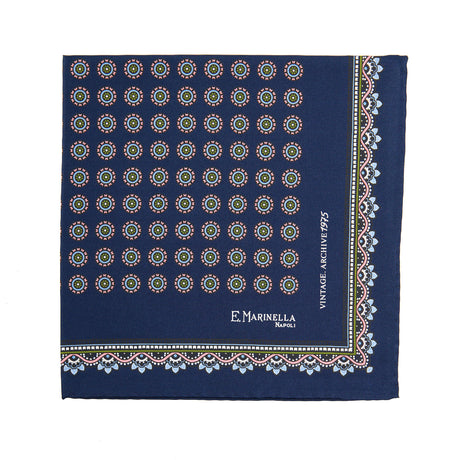 DARK BLUE HAND-PRINTED SILK POCKET SQUARE