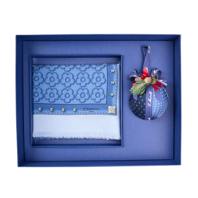 CHRISTMAS BOX WITH BLUE STOLE 115 IN WOOL, SILK AND CASHMERE