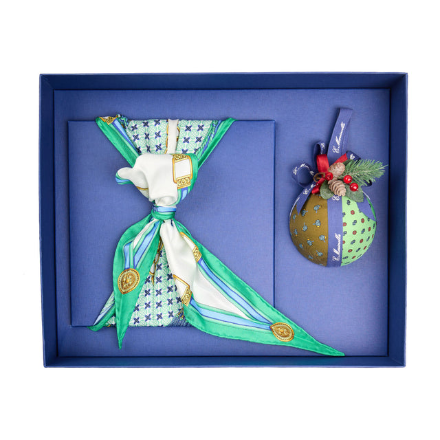Celebrate the season with a gesture of pure Italian sophistication. The Geometric Elegance Box combines two symbols of E. Marinella’s heritage: the Silk Diamond Scarf, crafted from fine printed silk, and the Iconic Christmas Bauble, adorned with silk inlays that feature some of the Maison’s most treasured patterns.