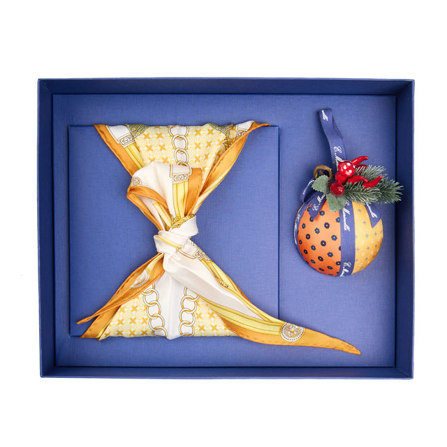 CHRISTMAS BOX WITH YELLOW SILK DIAMOND SCARF