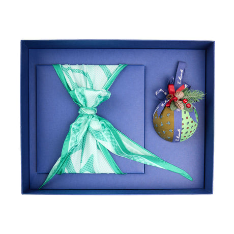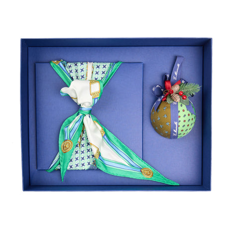 CHRISTMAS BOX WITH GREEN SILK DIAMOND SCARF