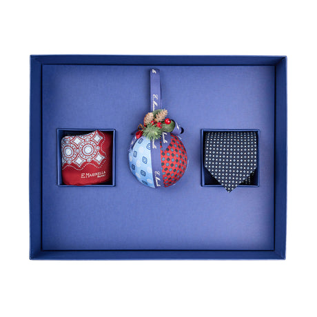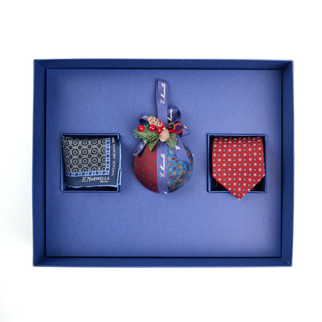 CHRISTMAS BOX BURGUNDY TIE AND BLUE POCKET SQUARE