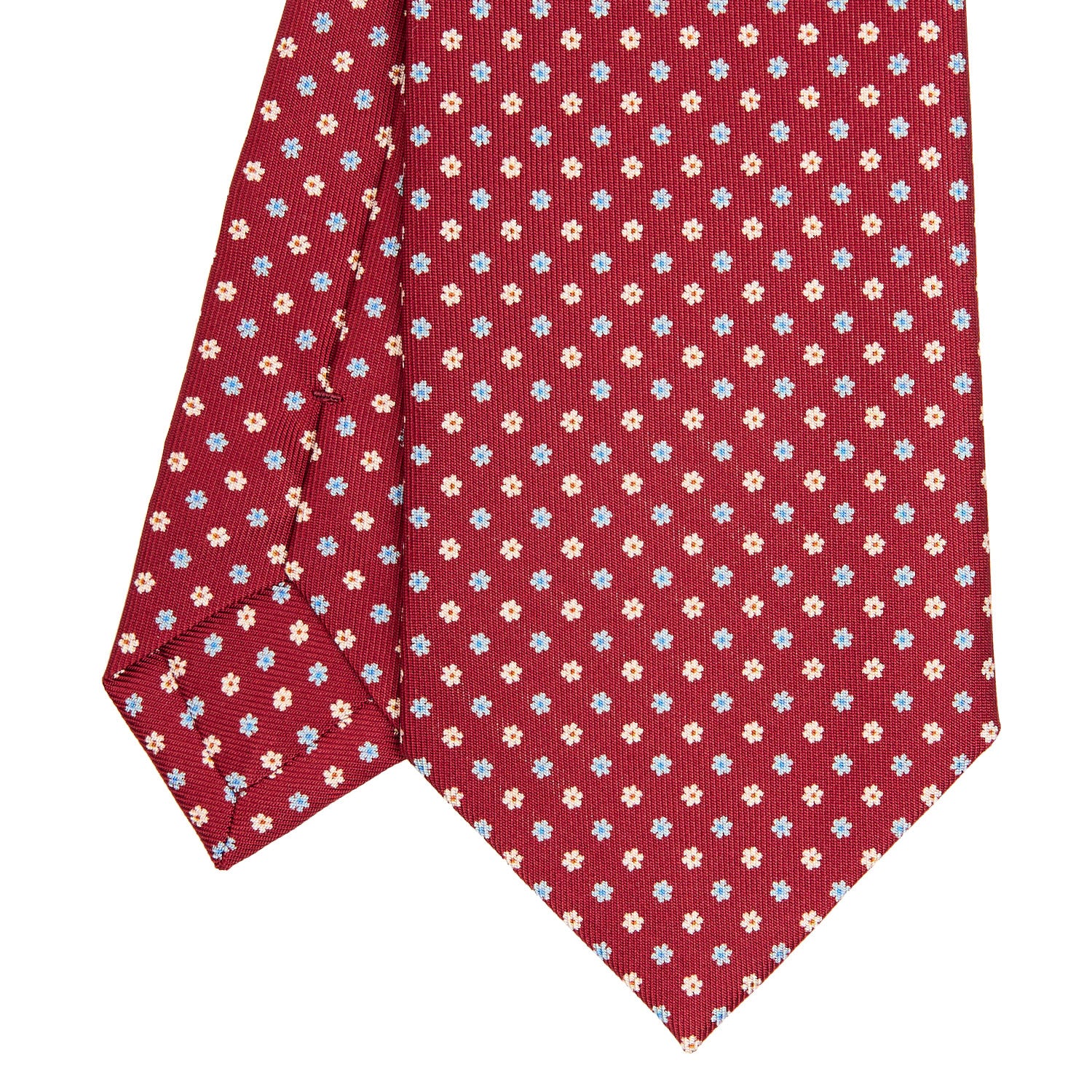 The classic three-fold silk tie, with a delicate floral motif, is crafted following traditional techniques handed down through generations—an expression of elegance that endures beyond time and trends. Alongside it, our iconic Christmas Bauble, created using silk remnants from ties produced in our atelier. Each inlay preserves patterns and colors once destined for our collections, giving new life to fabrics that carry the unmistakable imprint of the Maison. A small work of art, unique by its very nature.