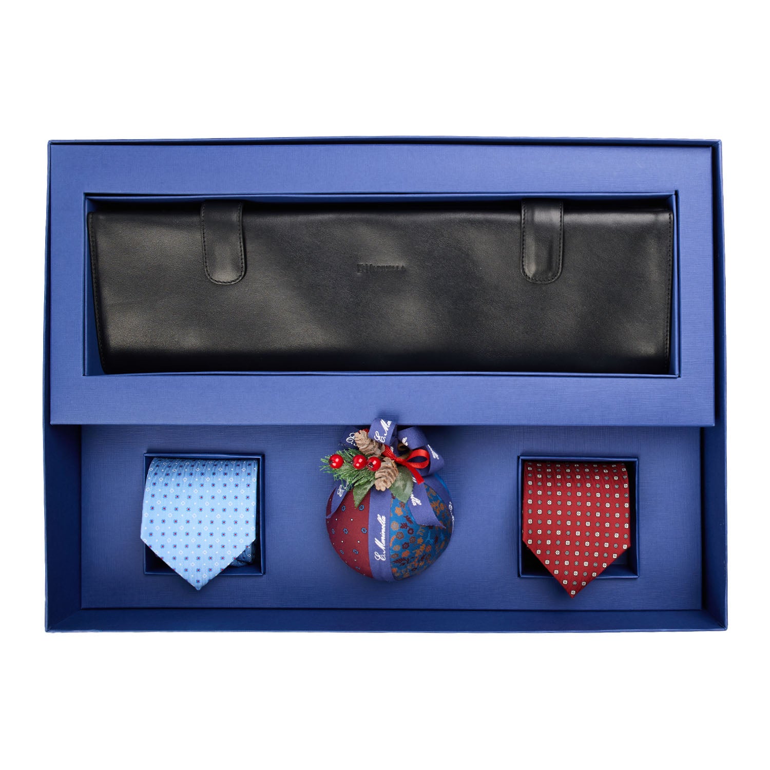Completing the box is our iconic Christmas Bauble, handcrafted with silk inlays recovered from imperfect ties. Every fragment of fabric, salvaged in our sartoria, gives life to a unique object: a small symbol of our heritage, reinterpreted for the festive season.