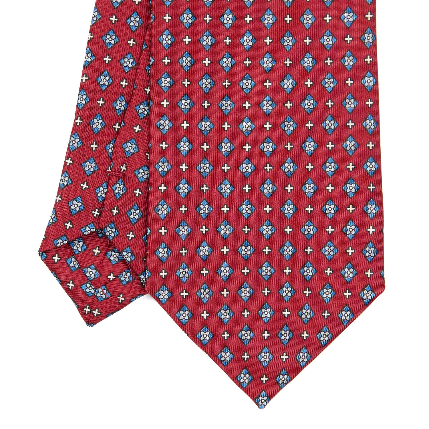 The E. Marinella tie is a hand-made product. From the hand-printed silk, to the individual cutting of each square, to the hand-closing of the final product. Characterised by rich colours, never excessive and by floral or geometric micro-designs. The tie is tipped with the same fabric as an extra detail.