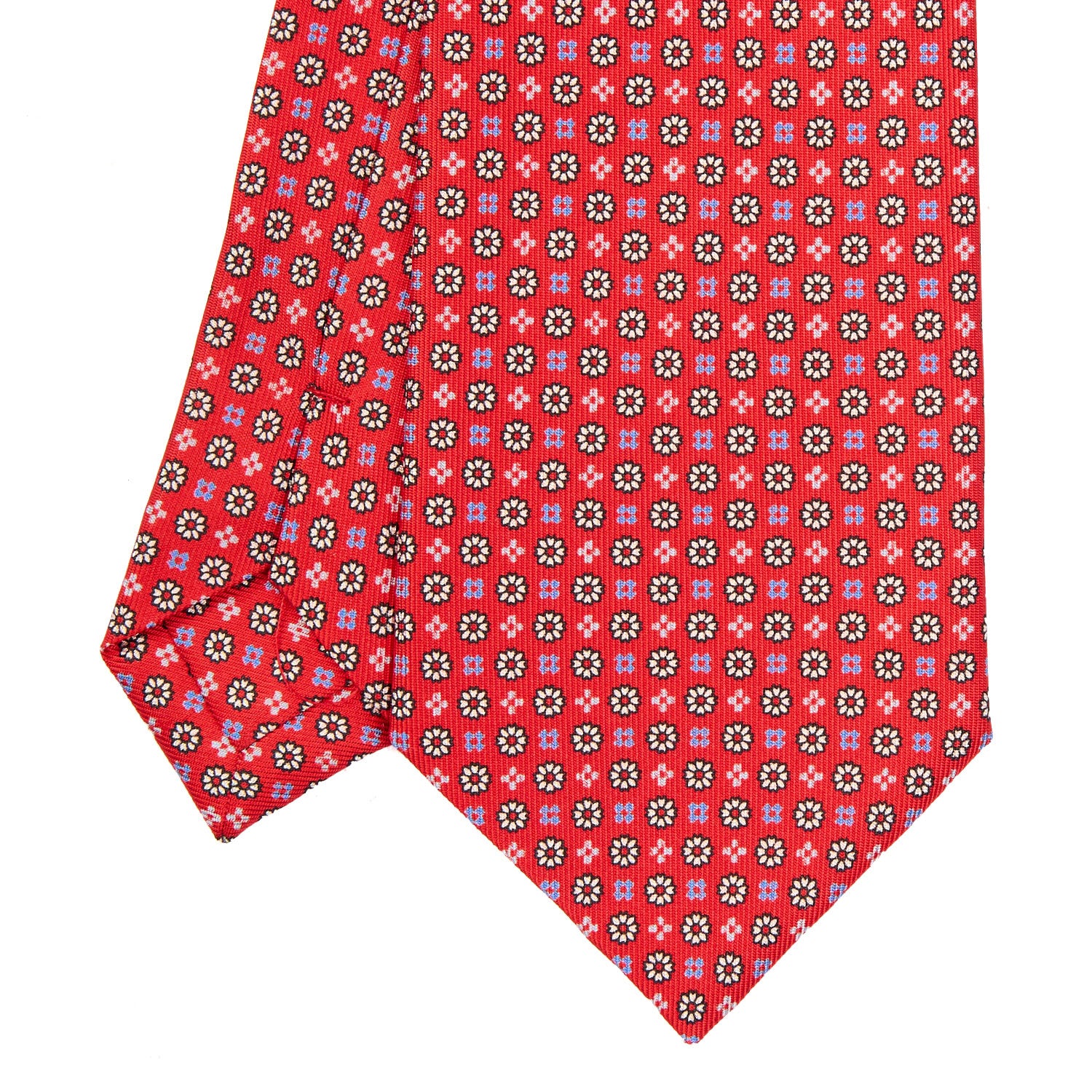 The E. Marinella tie is a hand-made product. From the hand-printed silk, to the individual cutting of each square, to the hand-closing of the final product. Characterised by rich colours, never excessive and by floral or geometric micro-designs. The tie is tipped with the same fabric as an extra detail.