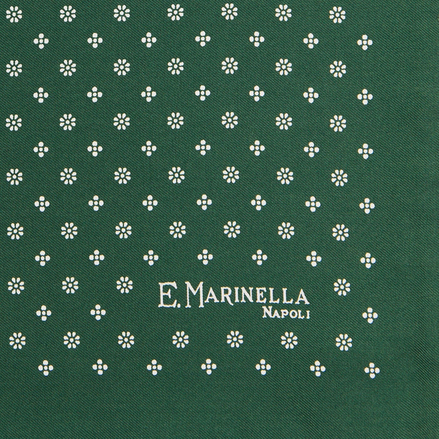DARK GREEN HAND-PRINTED SILK POCKET SQUARE