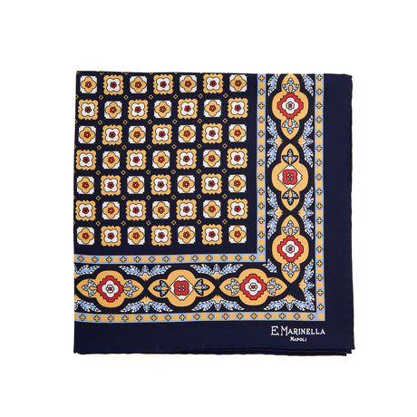 DARK BLUE HAND-PRINTED SILK POCKET SQUARE