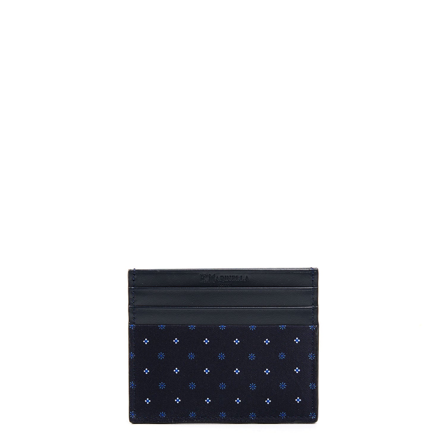 DARK BLUE LEATHER AND SILK CREDIT CARD HOLDER
