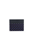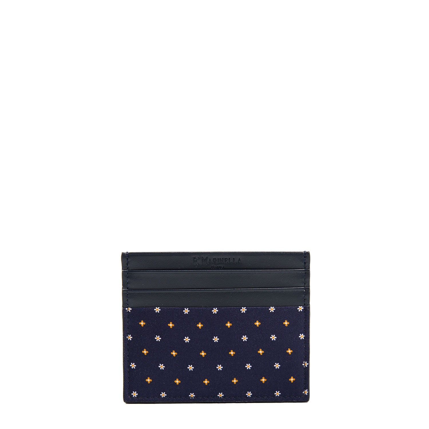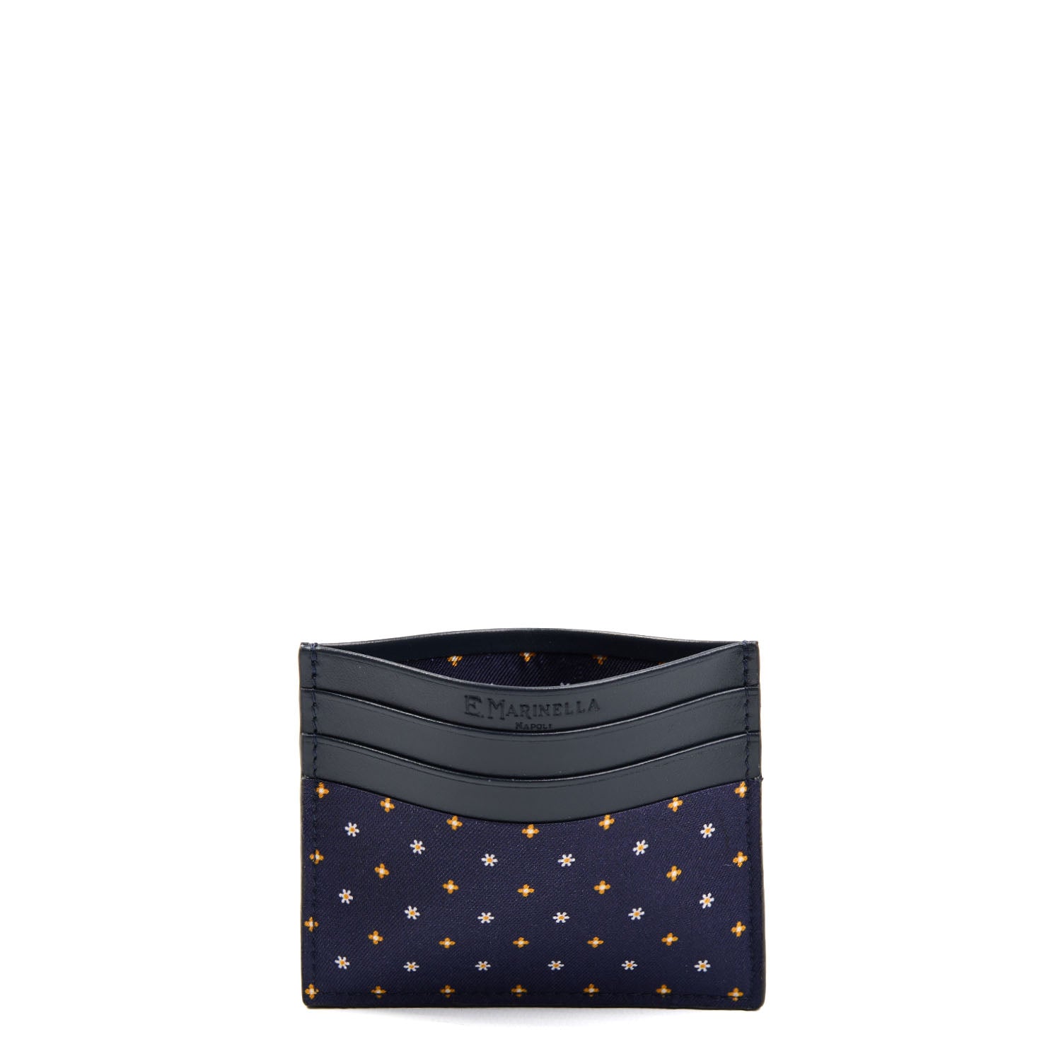 DARK BLUE LEATHER AND SILK CREDIT CARD HOLDER