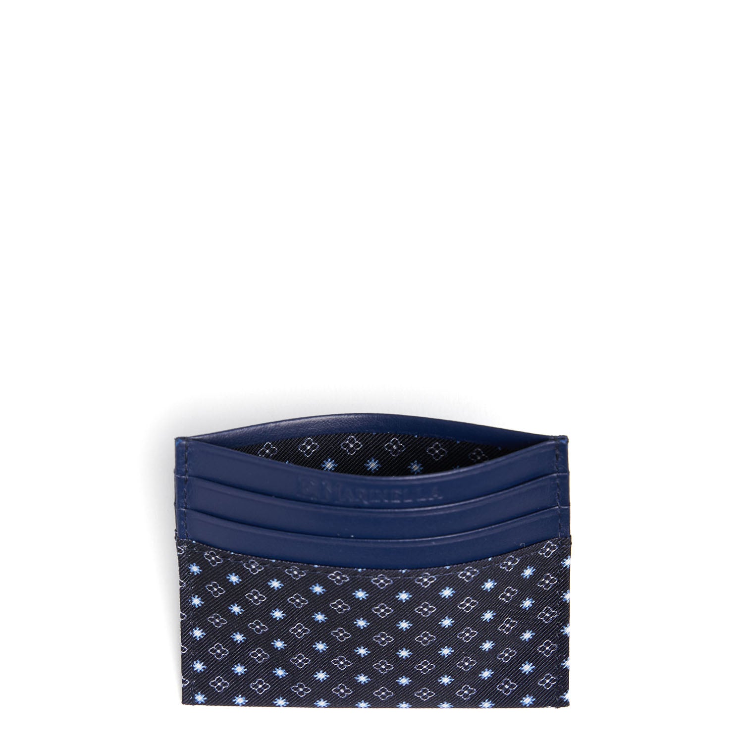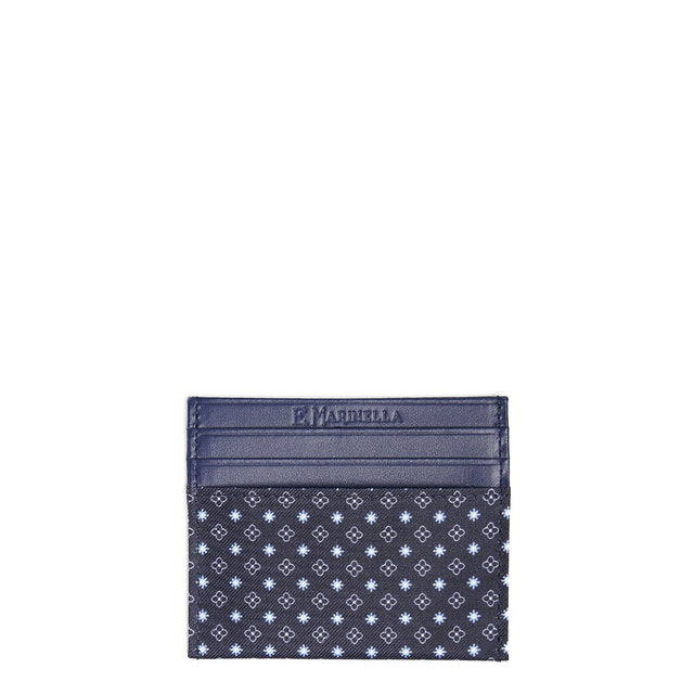 DARK BLUE SILK AND LEATHER CREDIT CARD HOLDER