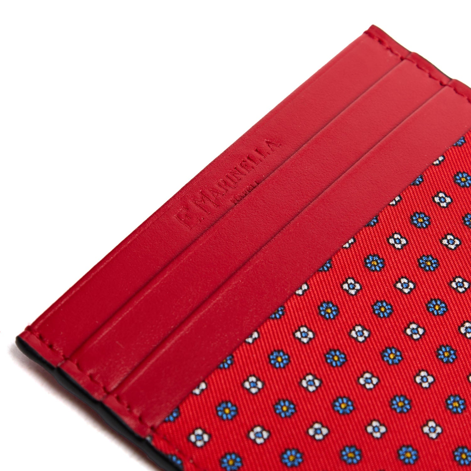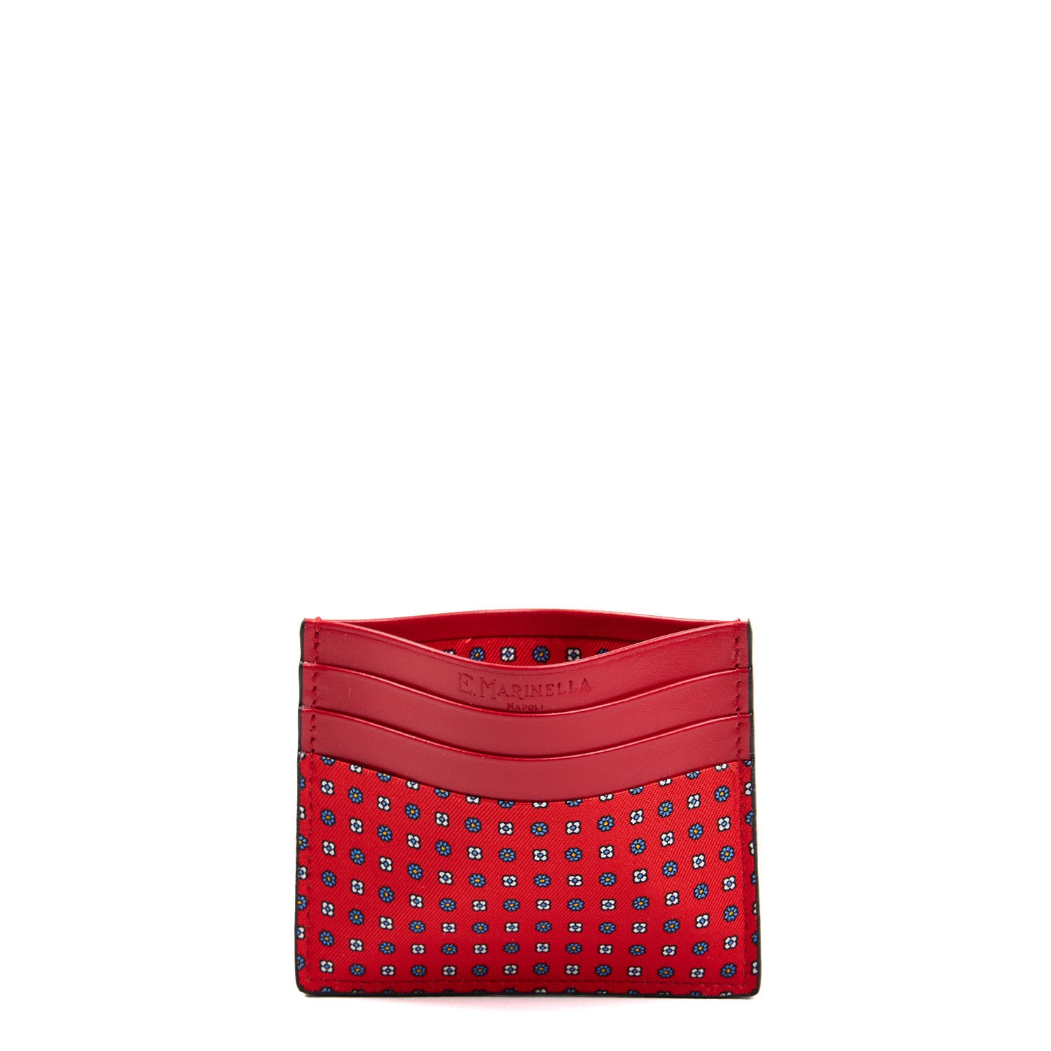 RED LEATHER AND SILK CREDIT CARD HOLDER