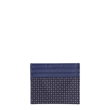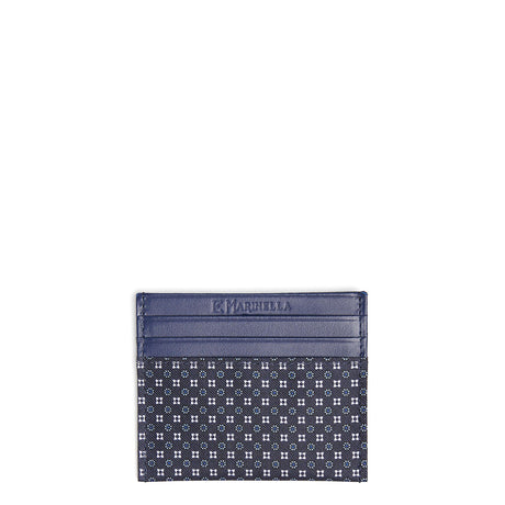 DARK BLUE SILK AND LEATHER CREDIT CARD HOLDER