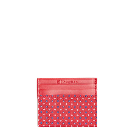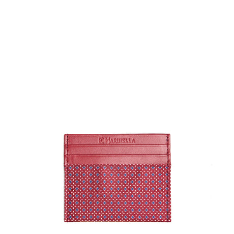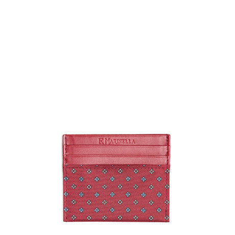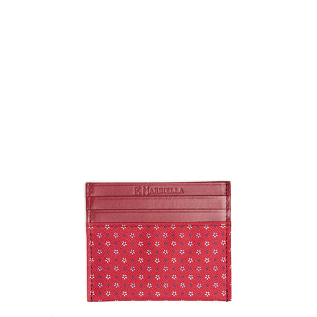 BURGUNDY LEATHER AND SILK CREDIT CARD HOLDER