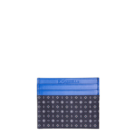 DARK BLUE LEATHER AND SILK CREDIT CARD HOLDER