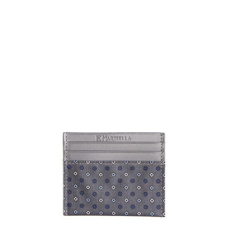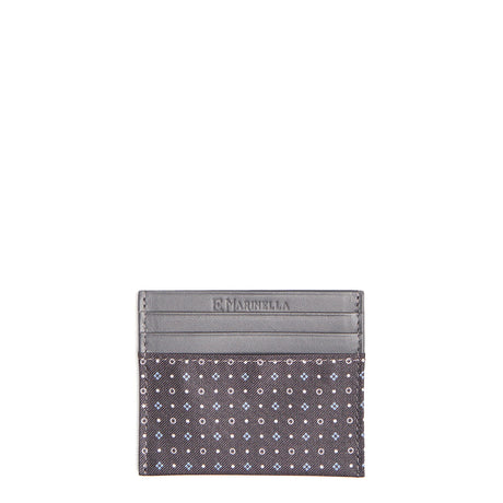 GREY LEATHER AND SILK CREDIT CARD HOLDER