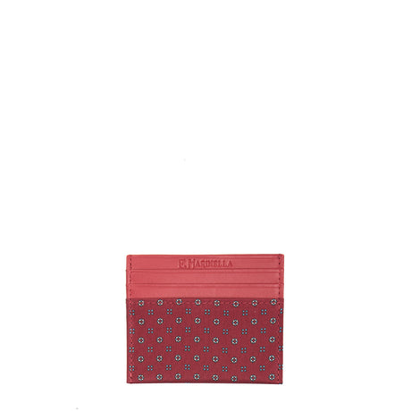 BURGUNDY LEATHER AND SILK CREDIT CARD HOLDER