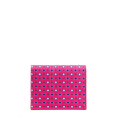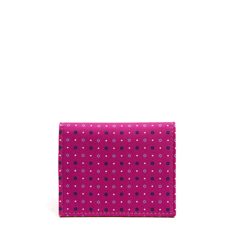 FUCSIA SILK AND LEATHER FOLDING CARD HOLDER